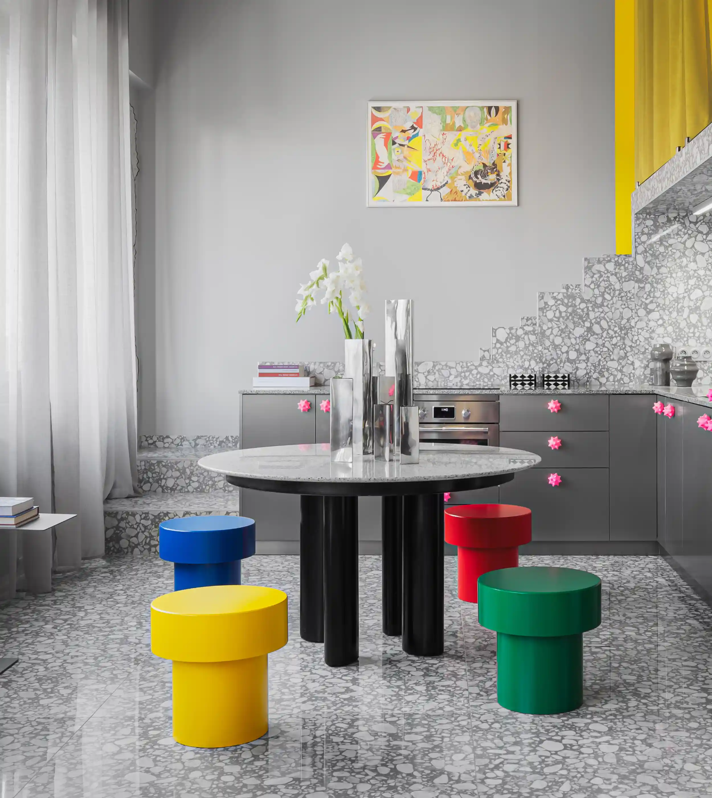 The Pion is a multifunctional piece of furniture, inspired by everyday objects and directly evoking childhood. It can serve as a stool, a side table, or a bedside table. Made in France from steel, it is hand-assembled and then finished with a powder coating.