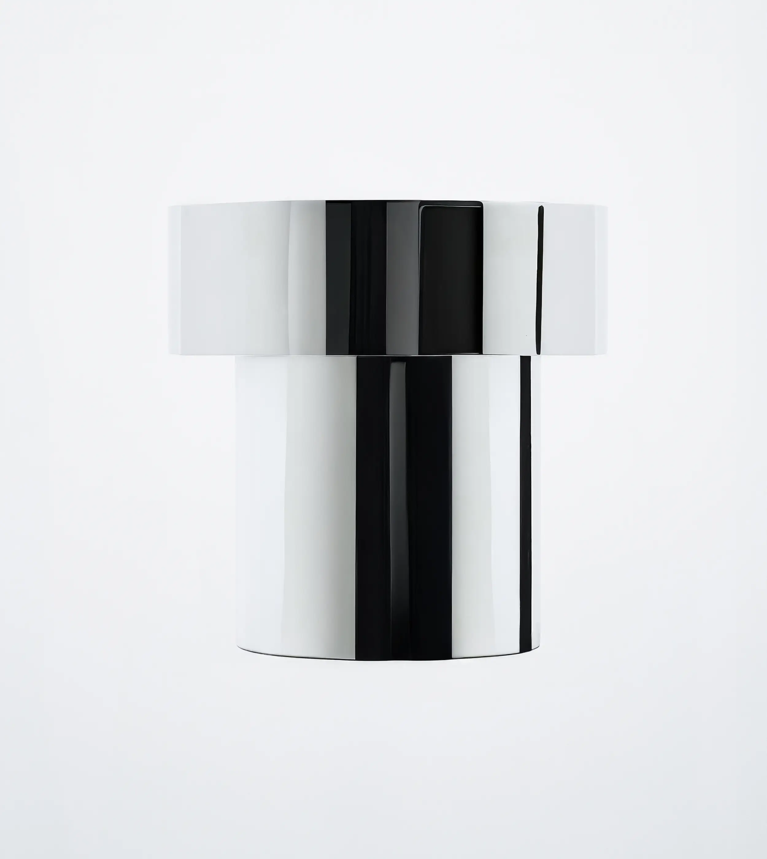 The Pion is a multifunctional piece of furniture, inspired by everyday objects and directly evoking childhood. Made of stainless steel and polished to achieve a perfect mirror finish, the Pion becomes an object of contrast where form and light dissolve in reflections.